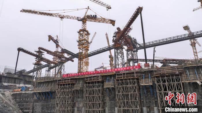 图为平陆运河企石枢纽上闸首中墩输水廊道浇筑现场。平陆运河集团供图